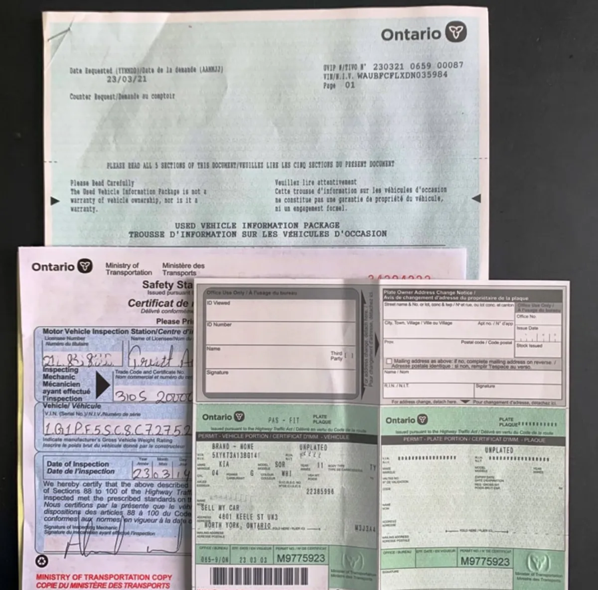 Used Vehicle Information Package (UVIP): In Ontario, you're legally required to provide a UVIP when selling a used vehicle privately. You can obtain this from ServiceOntario for a small fee. The UVIP includes the vehicle's registration history, lien information, and fair market value.